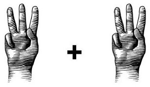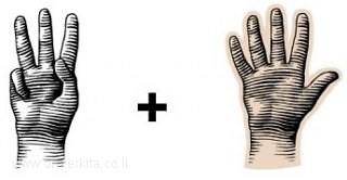 בתמונה אנו רואים: שלוש אצבעות מורמות + חמש אצבעות מורמות