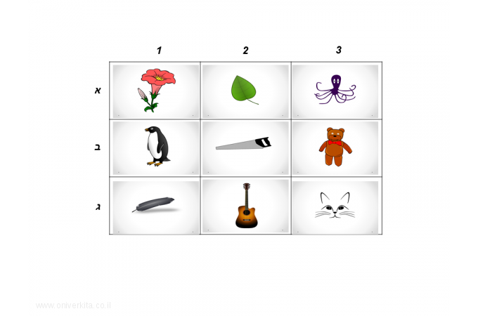 הִתְבּוֹנְנוּ בַּטַּבְלָה וּמִצְאוּ בְּאֵיזוֹ מִשְׁבֶּצֶת נמצא/ת ה-