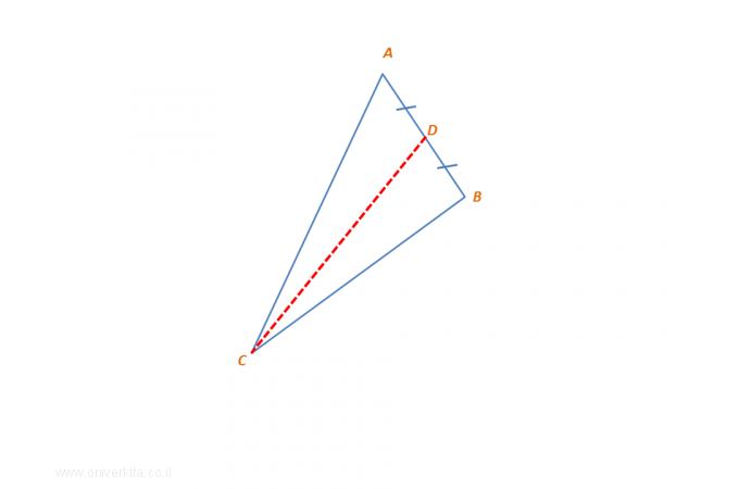 לפניכם משולש. מה ניתן לומר על הקטע הצבוע באדום?