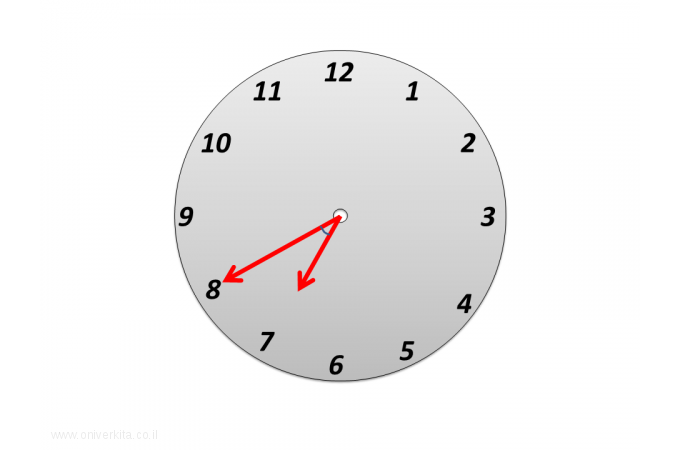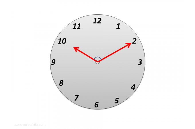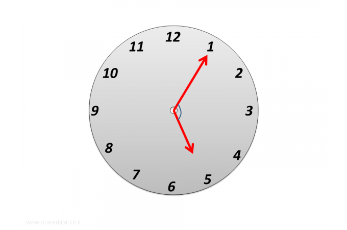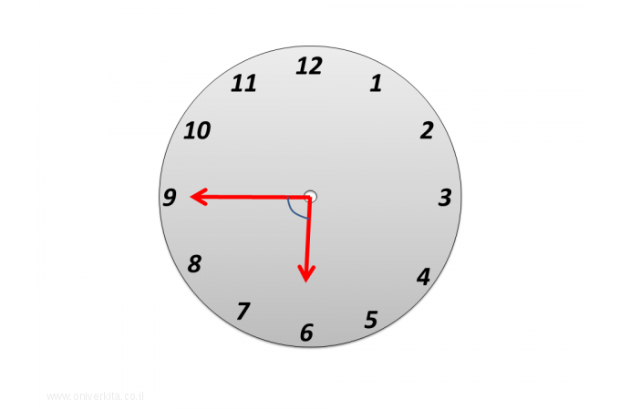 מהי להערכתכם גודלה של הזווית שבין שני המחוגים?
