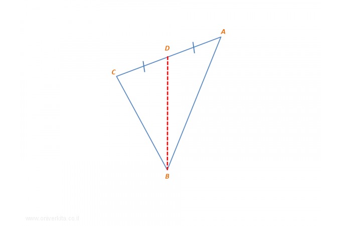 לפניכם משולש. מה ניתן לומר על הקטע הצבוע באדום?